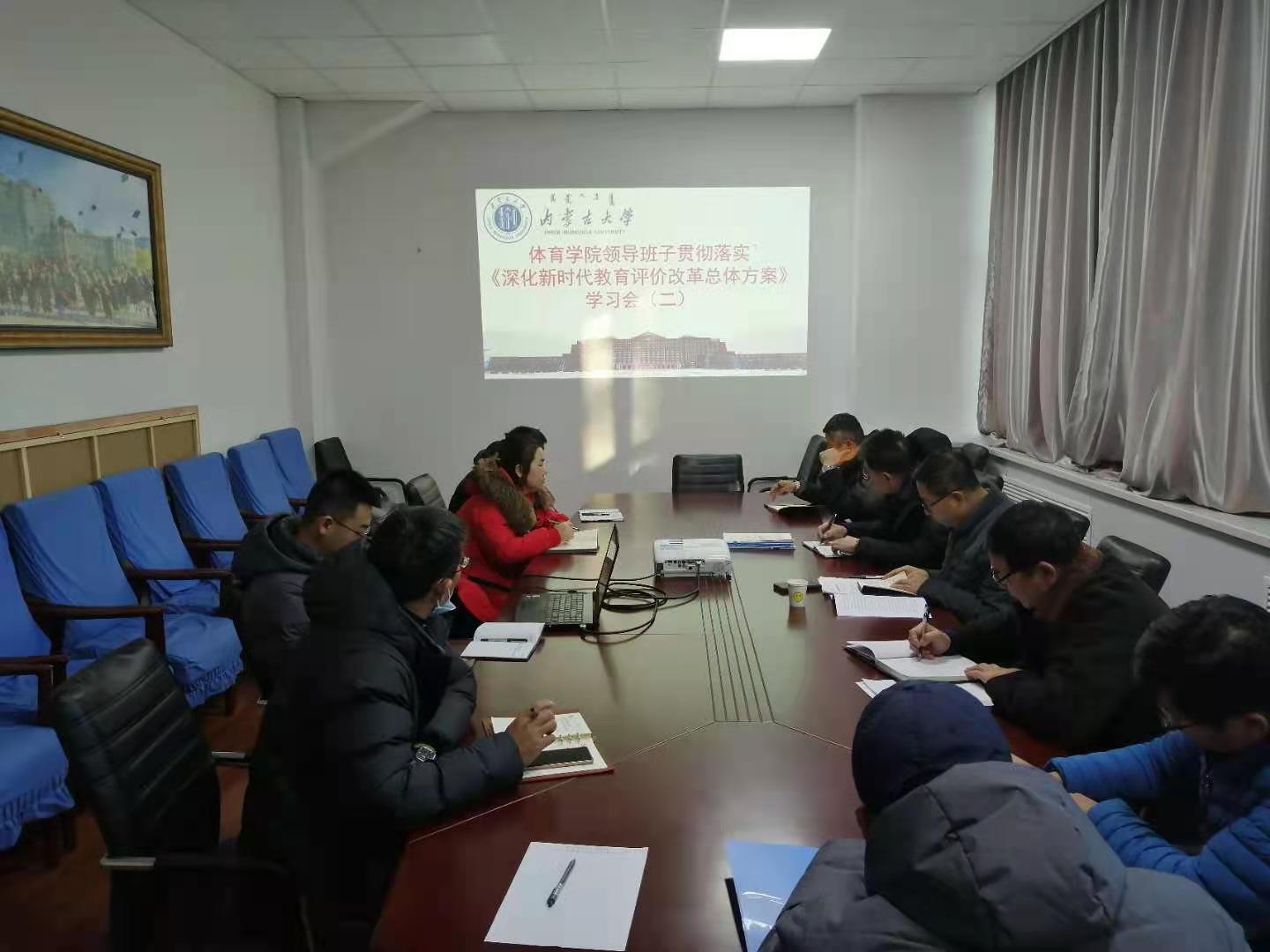2020年12月17日上午9:00,今年会官网于北校区文体馆会议室召开领导班子贯彻落实《深化新时代教育评价改革总体改革方案》学习会(二)。