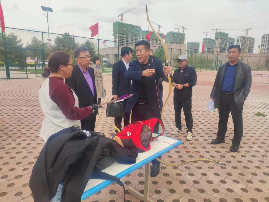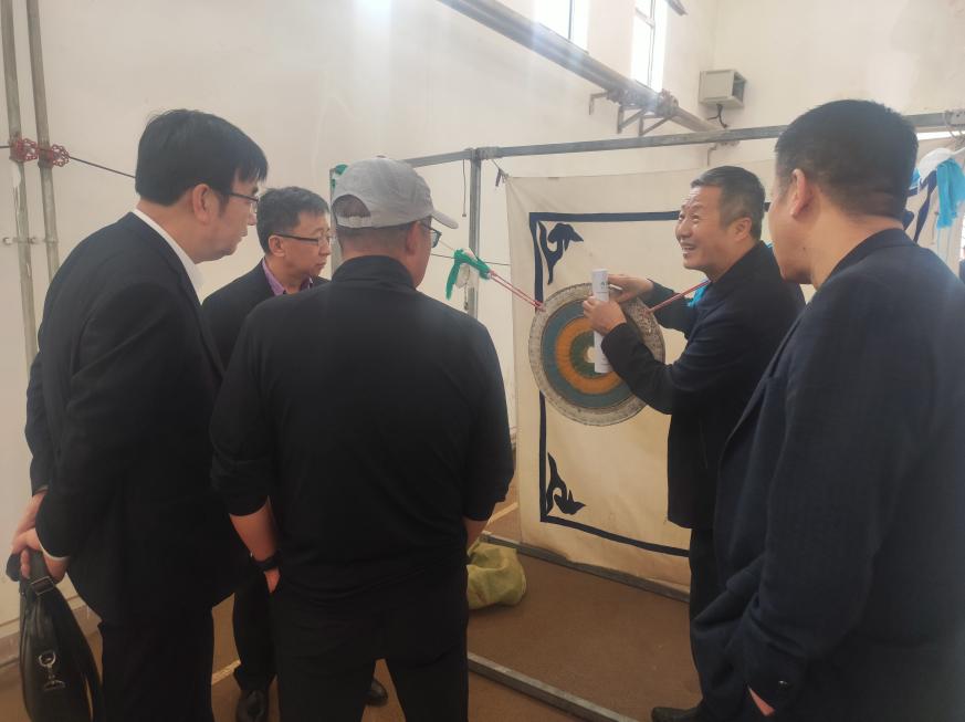 2023年5月5日,自治区学校美育教学与实践指导委员会副主任张卉一行3人来今年会对中华优秀传统文化传承基地(射箭项目)进行评估验收。专家组听取了专题汇报,对基地进行了详细认真的验收,对今年会射箭项目发展建设和比赛中所取得的成绩给予了高度评价,并为今后发展指明了方向。今年会官网党委书记温毅刚、院长王文杰,学校社科处副处长崔荣、学校创新创业教育中心主任秦志宏及射箭队教练等人员参加了评估验收活动。
