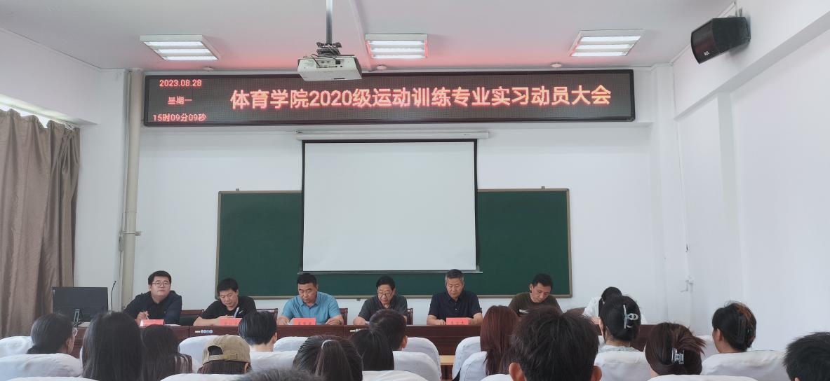 今年会官网2020级运动训练专业实习动员大会于8月28日在体育馆205召开。党委书记温毅刚、院长王文杰、副院长李慧君、刘忠良、团委副书记赵郑、2020级运动训练专业班主任黎欣荣、魏婷及2020级全体学生出席本次会议。