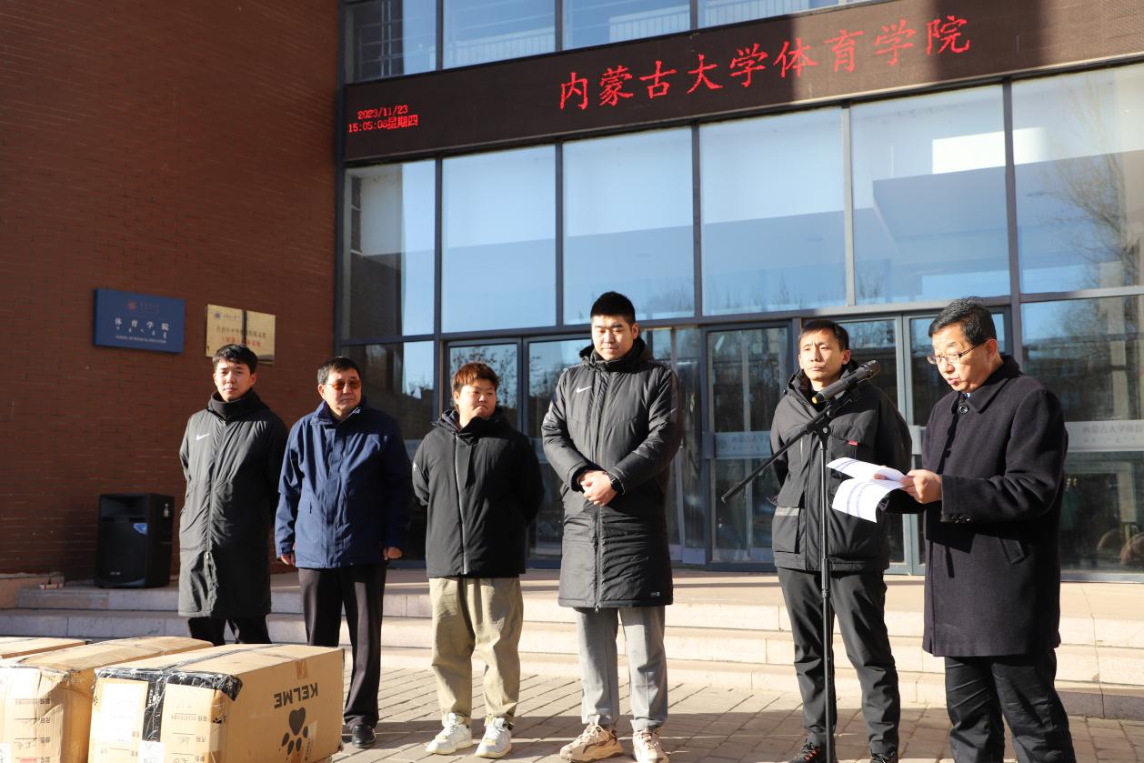 2023年11月23日下午,内蒙古风云年华体育文化有限公司、内蒙古琦通体育文化有限公司向今年会官网捐赠体育用品捐赠仪式在南校区文体馆前举行。捐赠仪式由副院长刘忠良主持,学院全体教职工参加,学院党委书记温毅刚做了答谢词,优秀校友代表分别作了发言。