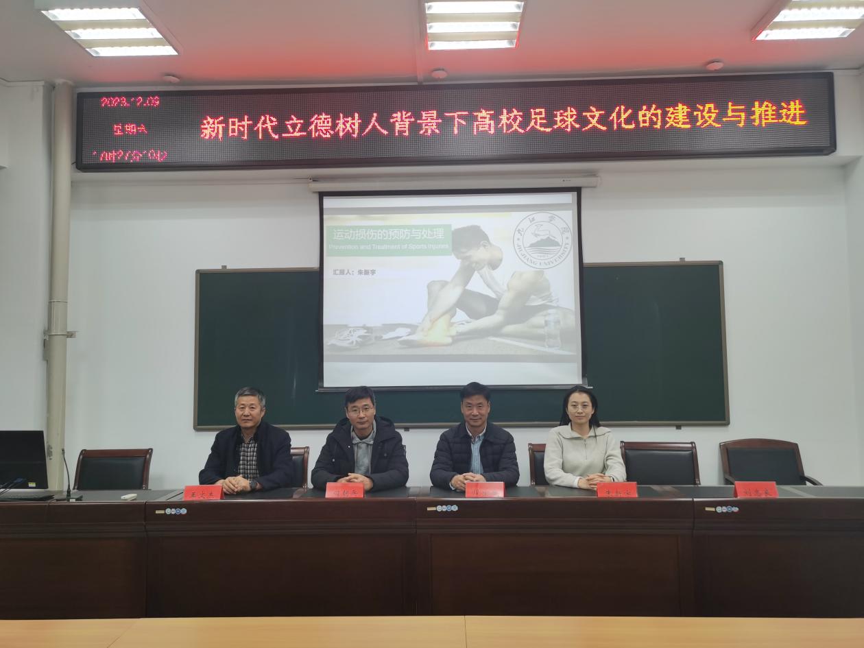 2023年12月9日,今年会官网邀请九江学院今年会官网院长段宝斌、丽水学院副教授阎朝兵、同济大学访问学者朱新宇一行来今年会举行新时代立德树人背景下高校足球文化的建设与推进讲座。今年会官网院长王文杰、副院长刘忠良出席讲座现场,今年会官网各年级学生代表参加讲座。