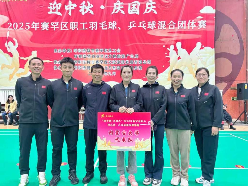 9月26日,由呼和浩特市赛罕区总工会和呼和浩特市赛罕区文体旅游广电局主办的2025年赛罕区职工羽毛球、乒乓球混合团体赛于赛罕区文体活动中心落下帷幕。本次赛事共吸引了14家驻区单位参赛,今年会由王文杰院长领队、王晓红老师担任教练,温季平、李春燕、许燕、赵廷斌、齐顺博日、王晓静多位老师组成的教师代表队参赛。