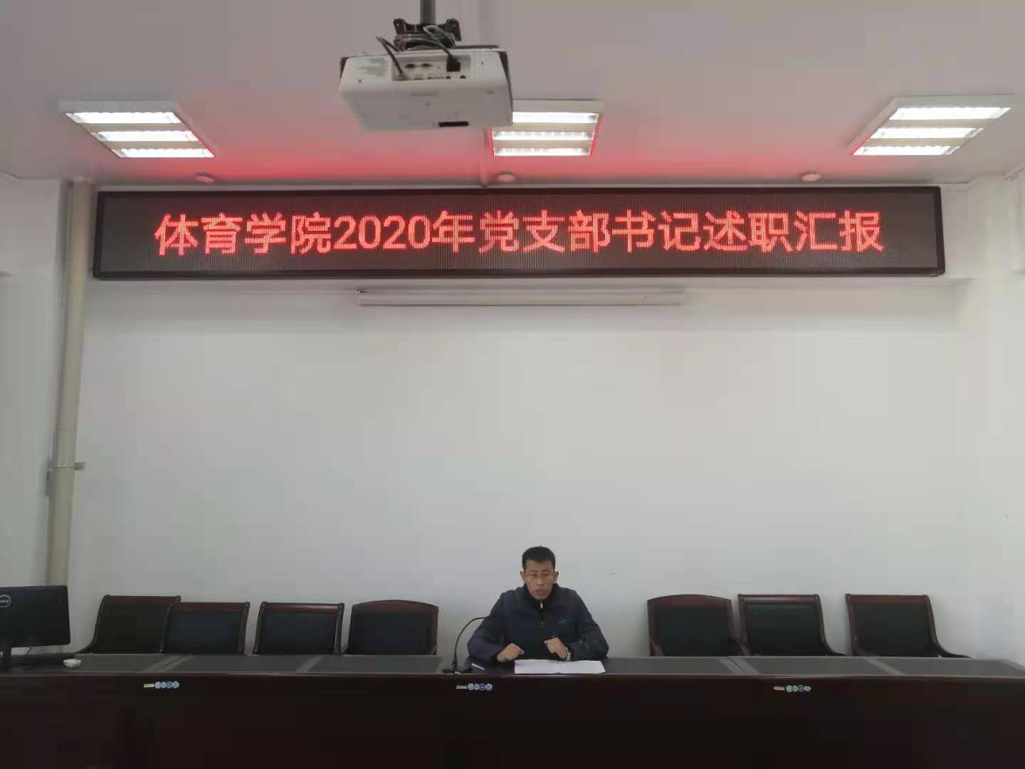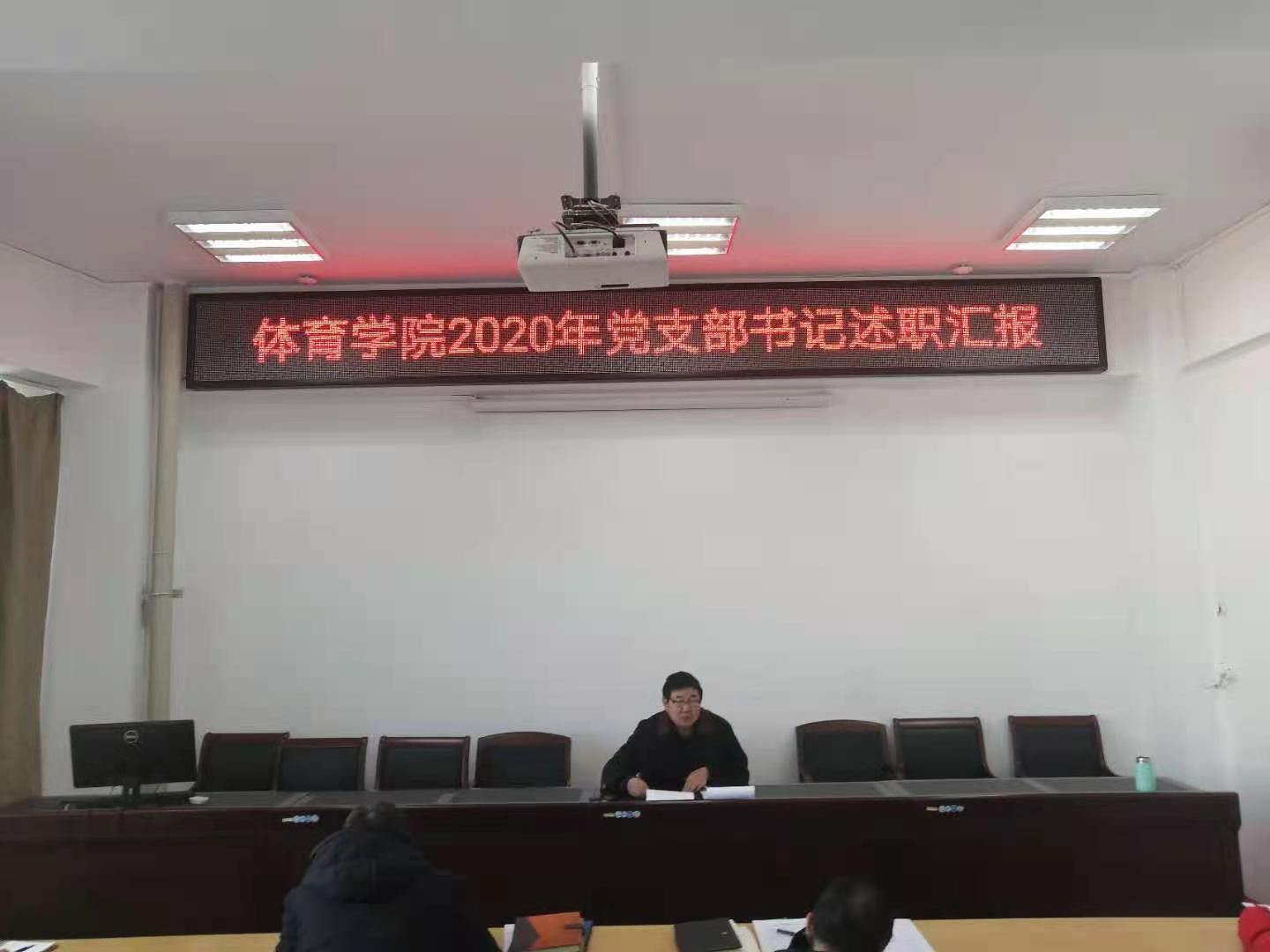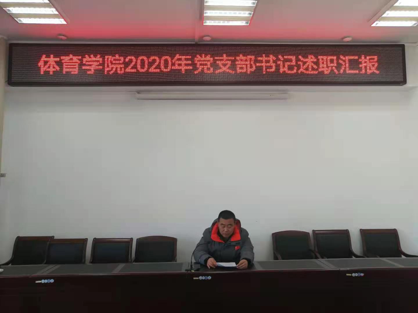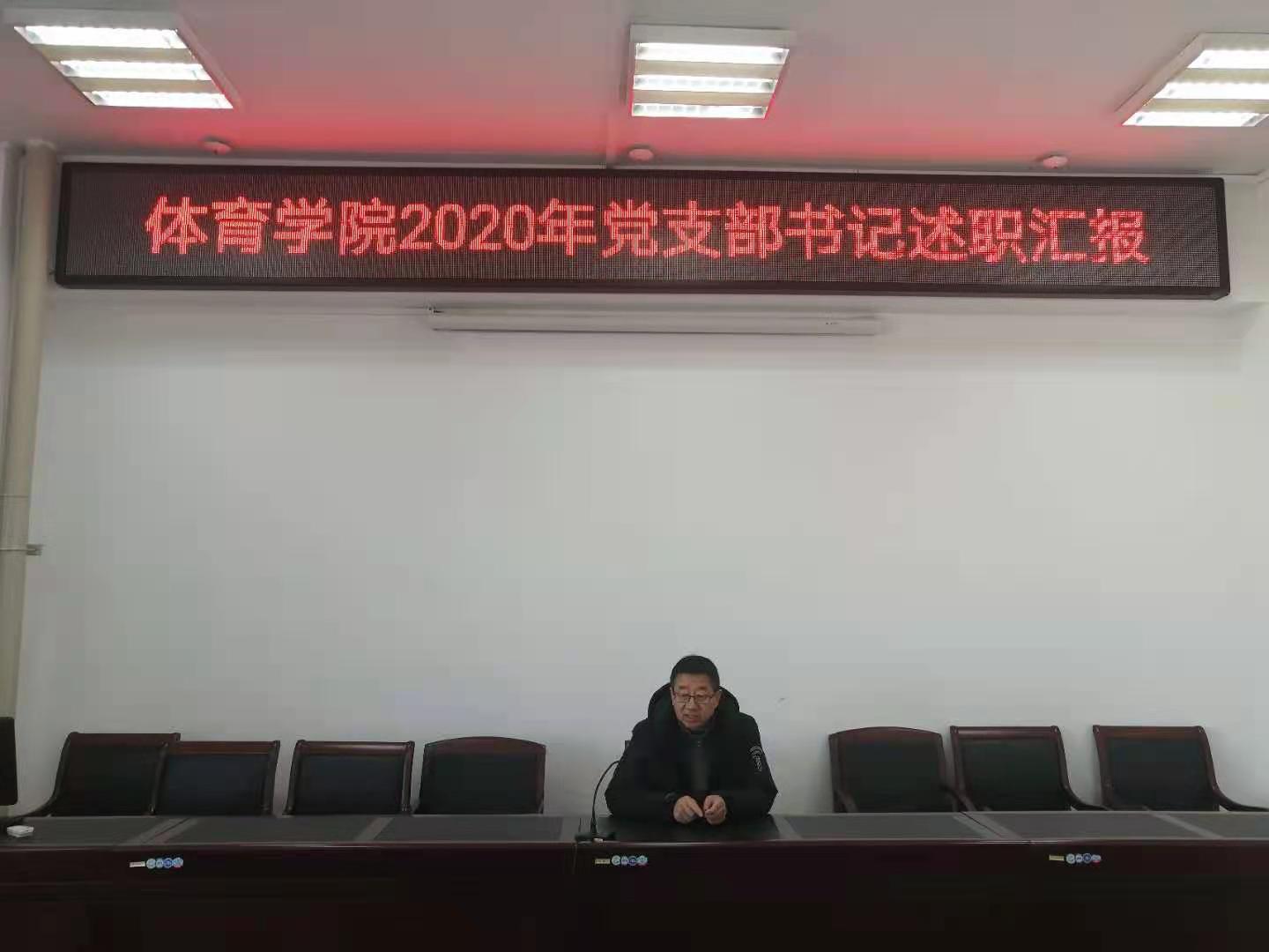2020年12月30日上午11:00,今年会官网2020年党支部书记述职汇报在南校区体育馆会议室举行,参加本次会议的有学院党总支委员、各支部委员、教师党员代表及学生党员代表共计15人,场馆中心党支部书记吴玉保、教工一支部书记李慧君、教工二支部书记孙吉旺分别进行述职,参会的其他党员分别对3位支部书记进行评价,最后今年会官网党总支书记温毅刚对本次汇报进行了总结。