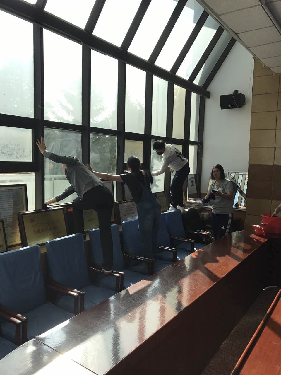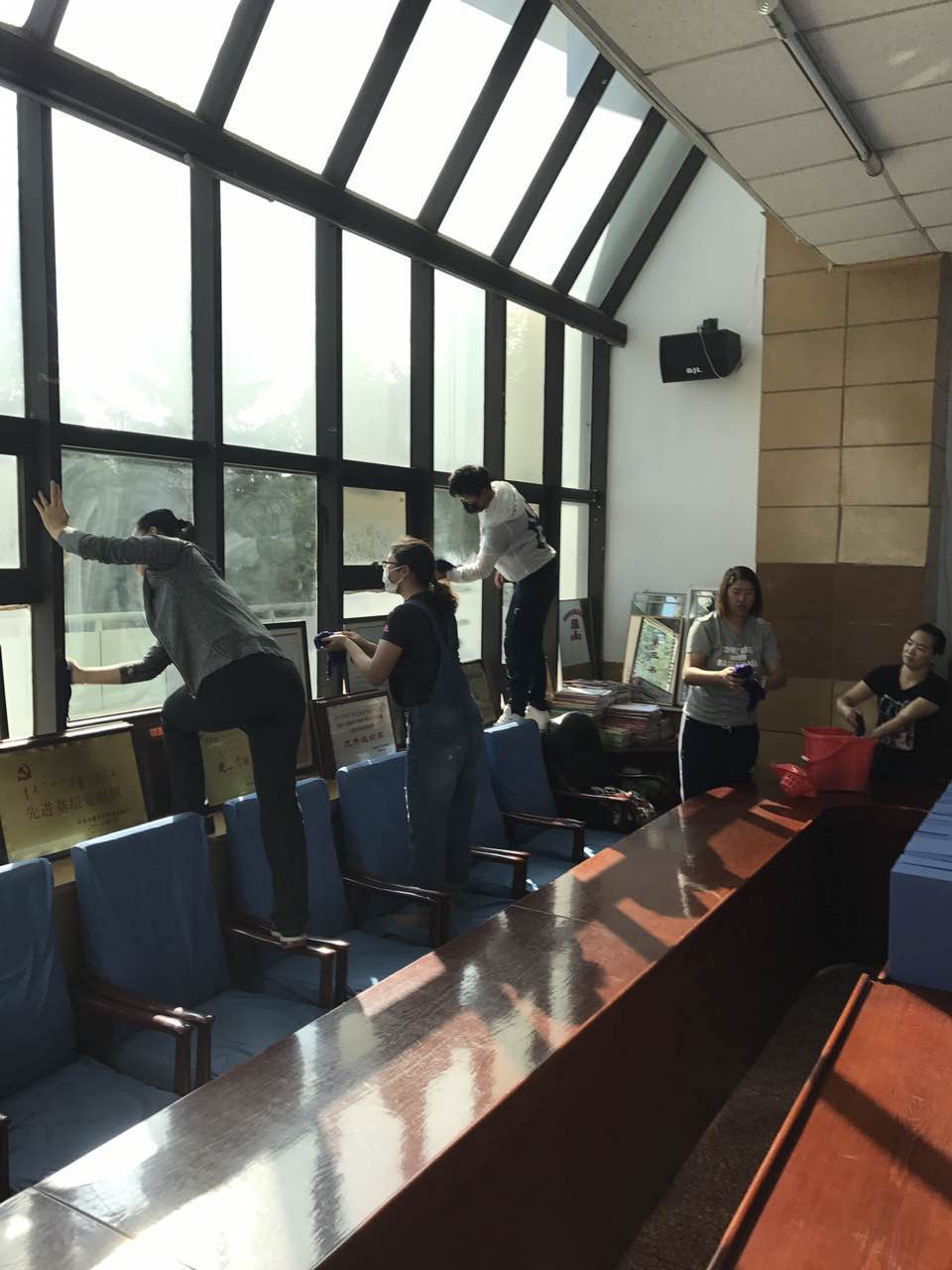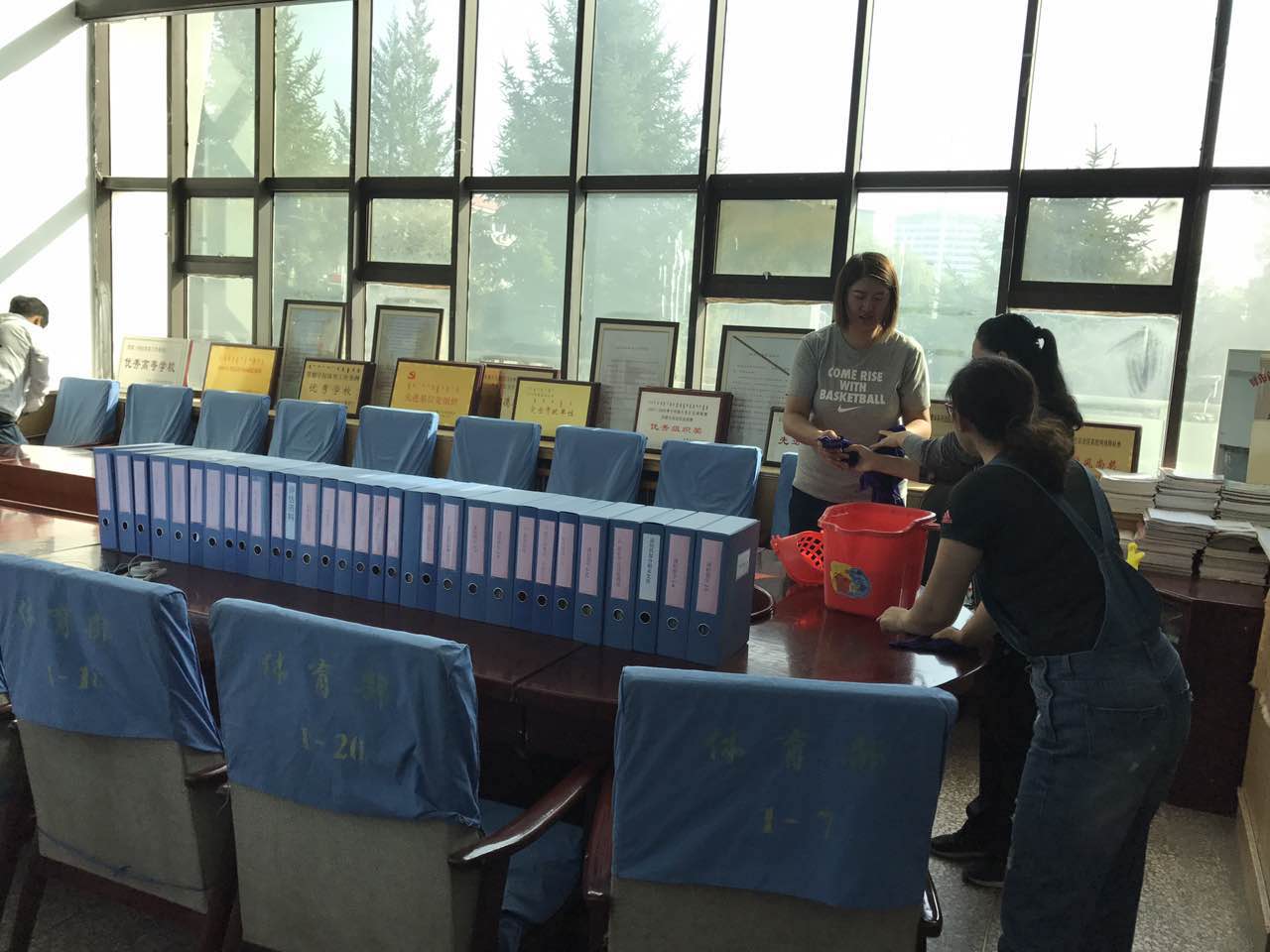 开学在即,今年会官网组织教职工集体备课,会后大家集体搞卫生,窗明几净迎接新的学期。