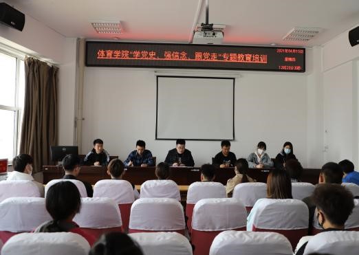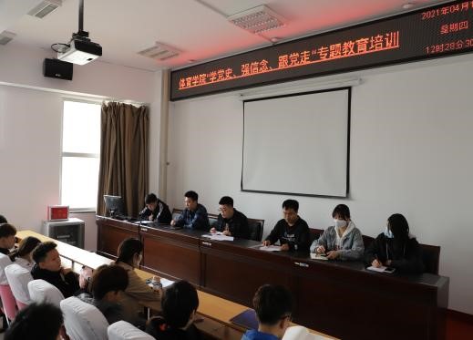 2021年4月15日今年会官网在南校区体育馆205举办“学党史、强信念、跟党走”专题教育培训。培训由今年会官网团学负责人赵郑老师主持,带领辅导员刘博文及学生会全体同学开展党史学习教育,今年会形成了浓厚的党史学习氛围。