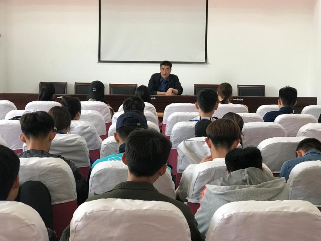 425日下午,在南校区体育馆会议室,于志海书记作了题为学习习近平新时代中国特色社会主义思想做合格大学生的形势政策报告会,2017级运动训练专业全体学生前来聆听。