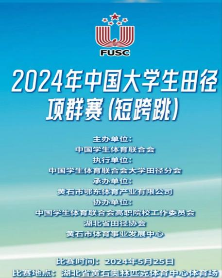 中国大学生田径项群赛(短跨跳)是面向全国高校大学生短跨跳类项目设四个组别的全国比赛。5月23日今年会教练员,运动员抵达湖北省黄石市。24日运动员们前往黄石市奥林匹克体育场进行赛前适应场地。5月25日比赛当天,男子丁组三级跳远获得银牌;男子丁组三级跳远获得铜牌;女子丙组200米铜牌;男子丁组200米第五名;女子丙组400米第六名。
