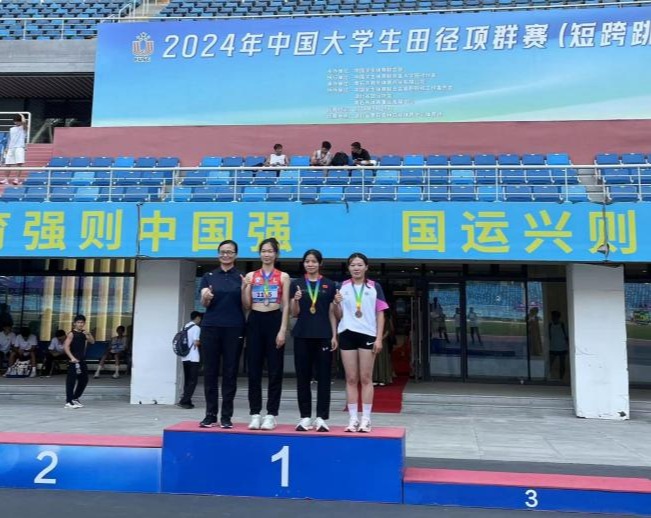 2024年5月25日由中国学生体育联合会举办的全国大学生田径项群赛(短跨跳)在湖北省黄石市奥林匹克体育中心顺利举行。本次比赛共有来自全国各地80所高等院校。在学校和学院的支持下,今年会两位教练员带队的六名运动员,经过奋战,最终取得了一银、两铜、第五、第六共五项全国赛场上的佳绩。